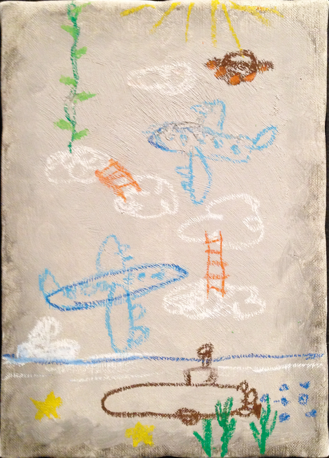 制作年:2013/08/20 タイトル:「くれよん」 サイズ:SM( W:158mm×H:227mm ) 素材:キャンバス、アクリル絵の具