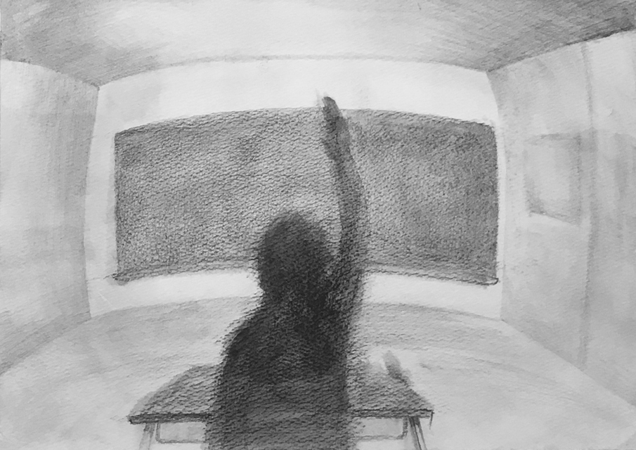 制作年:2016/09/14 タイトル:「自己確立までの過程」 サイズ:A4(W:297mm × H:210mm) 素材:木炭、画用紙 サービス:アクリルフレーム付き、送料無料