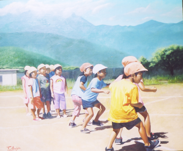 制作年:2004/08/09 タイトル:「里山のこどもたち」 サイズ:F20( W:606mm×H:500mm ) 素材:キャンバス、油絵の具 サービス:送料無料、仮縁付き